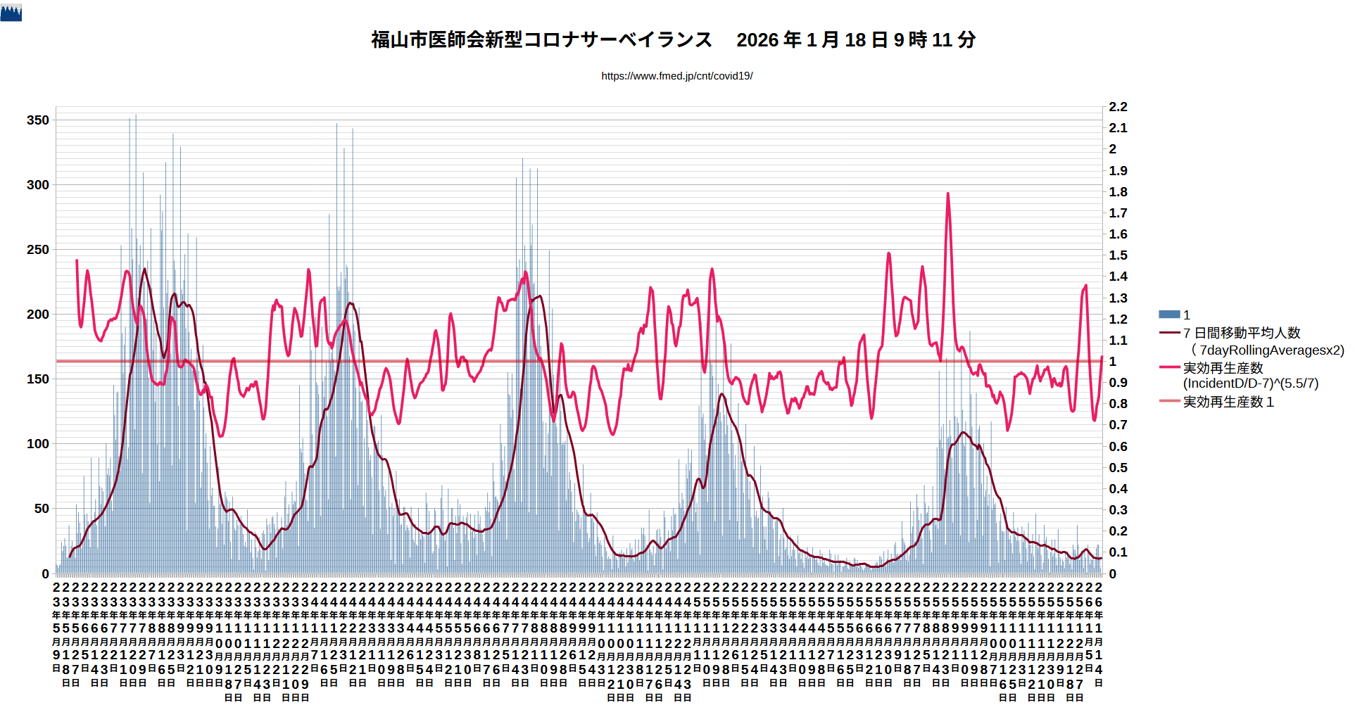 インフルエンザの流行もあり、今後の動向の予測は難しいですが、感染対策に留意する必要がある状況です。